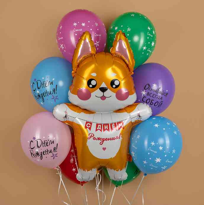 Шар фольга фигура Корги на День Рождения 41" 104смFL 24163