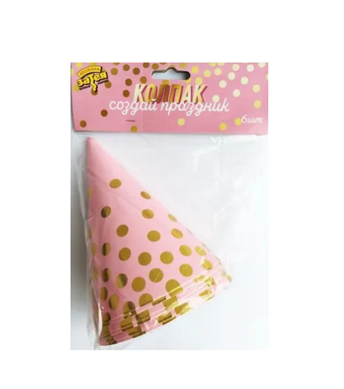 Праздничный колпачок из бумаги розового цвета в золотой горошек поможет создать весёлую и беззаботную атмосферу праздника и станет забавным атрибутом для гостей торжества. Количество: 6 шт.