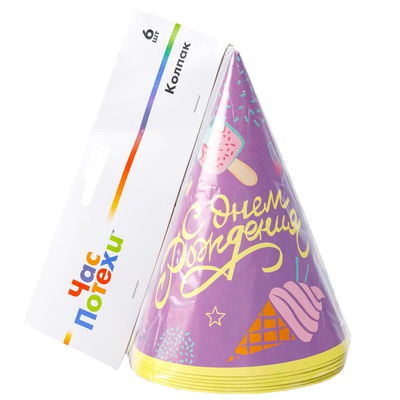 Колпаки бумажные 6 шт. С днём рождения! Мороженое