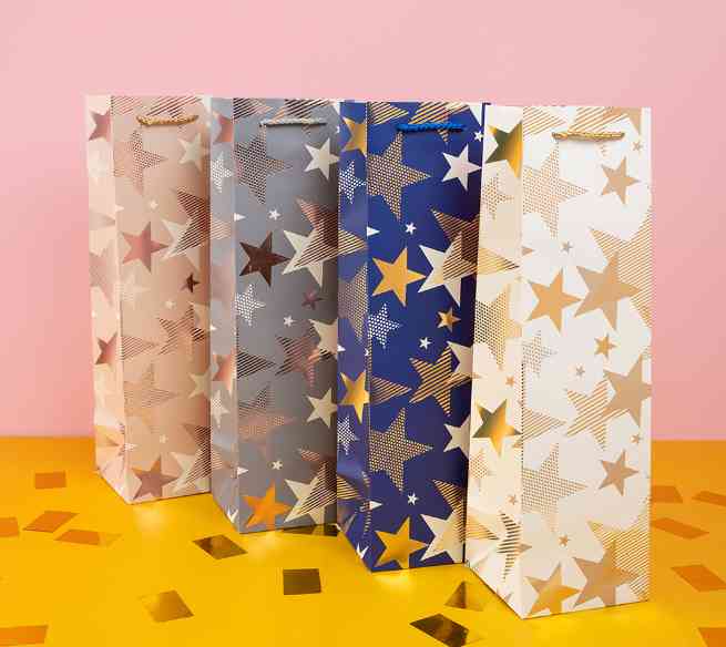 Пакет бумажный под бутылку Мириады звезд Розовый Металлик