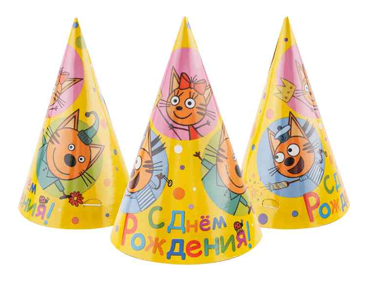 Колпак бумага Три Кота Яркий праздник Желтый (уп6)