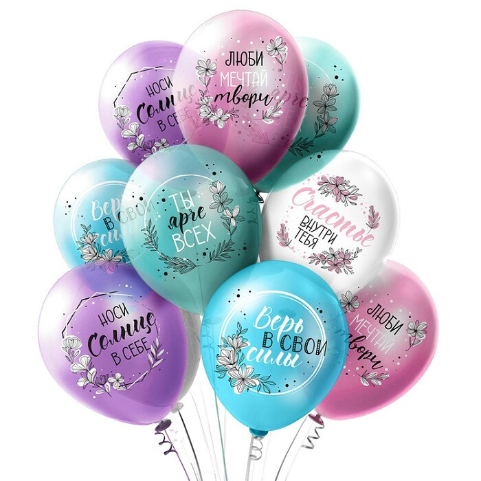 Шар латекс с рисунком 12"БК 1ст. 2цв. пастель Пожелания для нее (25шт) Таиланд