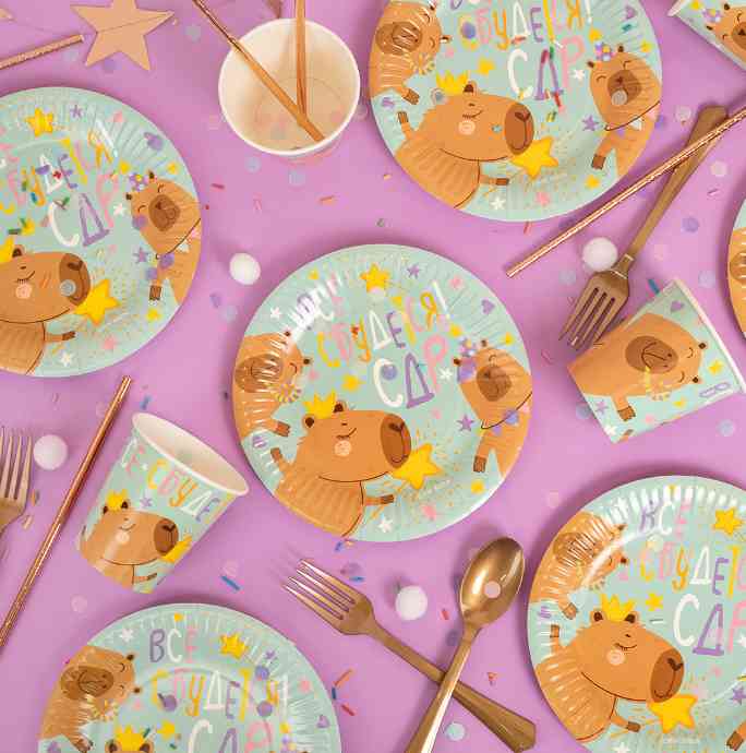 Тарелки бумажные 180см Капибара СДР Все Сбудется! (уп6) ДБ