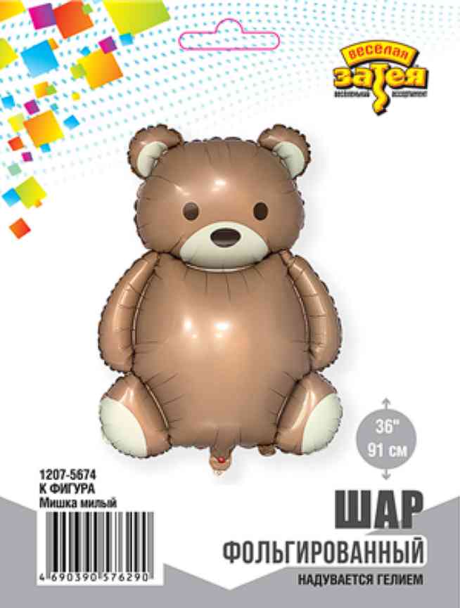 Шар фольга фигура Мишка Милый сатин 36" 91смВЗ (воздух) (медведь)