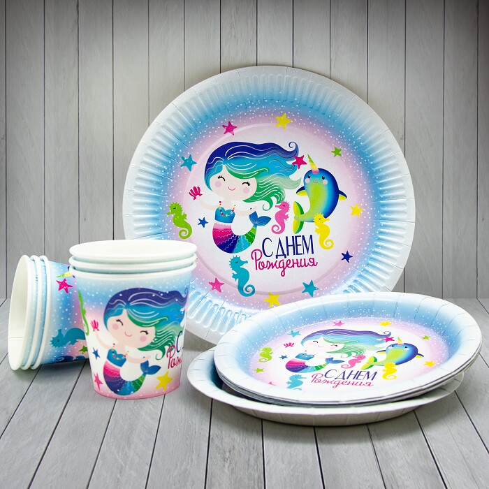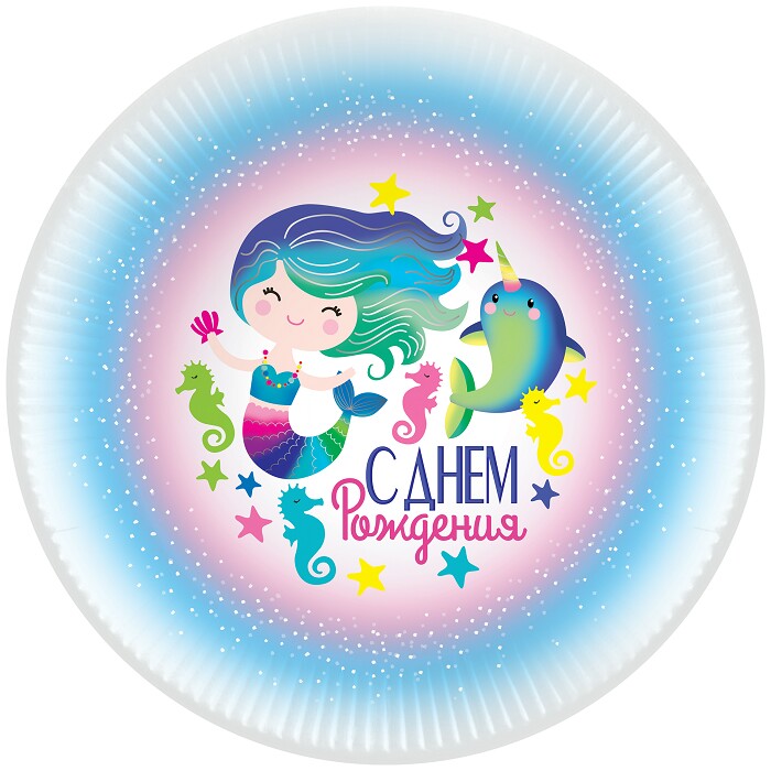 Тарелки бумага 230мм С ДР Русалочка и нарвал (уп6) 77125 ДонБал