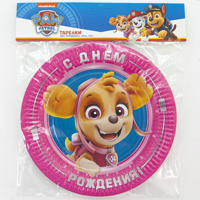Тарелки бумага 230мм С ДР Щенячий Патруль розовый уп6 ВолВес