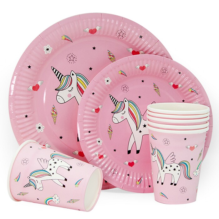 Тарелки бумага 230мм Радужный единорог розовый уп6 ВолВес