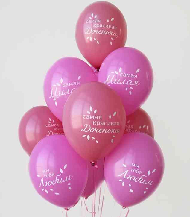 Высококачественный шар из натурального латекса. Пастель - матоввые шары, с двухсторонним шелкографическими текстами для доченьки, с большим полем печати: Самая красивая Доченька. Самая добрая. Мы тебя любим. Самая нежная. Самая милая. Идеальный ассортимент для розничной продажи воздушных шариков и украшения праздника. Воздушные шары изготавливаются из экологически безопасного 100%-ного натурального латекса. В окружающей среде разлагаются на безопасные компоненты примерно с той-же скоростью, как обычные листья деревьев. После использования лопнуть и утилизировать как бытовой отход.