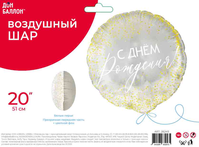 Шар фольга с рисунком 20"FL Круг С днём рождения! (упак)