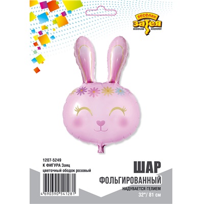 Шар фольга фигура голова Заяц цветочный ободок розовый (голова) 32" 81смВЗ (заяц)