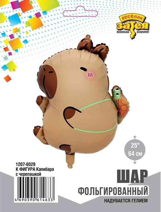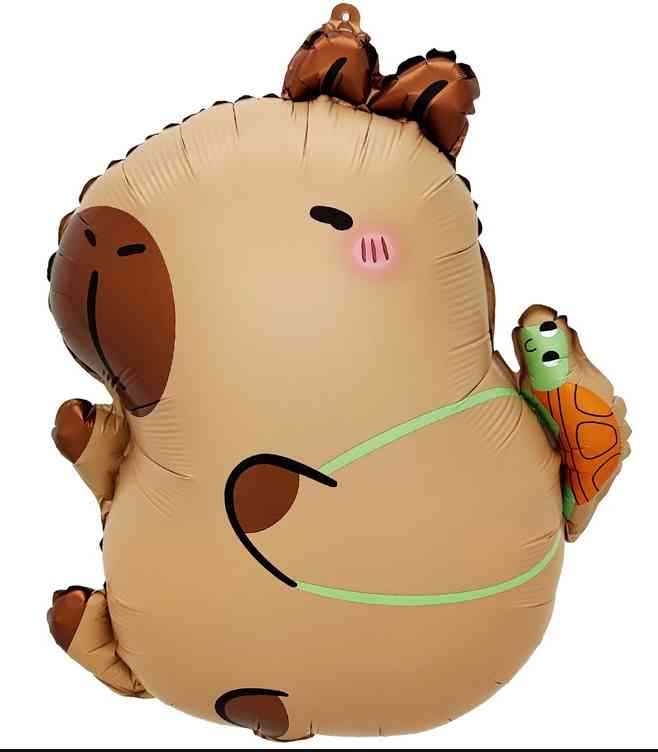 Объемный фольгированный шар в форме Капибары с черепашкой за спиной - идеальное сочетание милоты и веселья. Такой шар можно использовать не только на днях рождениях, но и на вечеринках, пикниках или даже просто для поднятия настроения в любой день! Капибара, известная своим дружелюбным и спокойным характером, станет настоящим символом уюта и радости. Пусть шар с Капибарой станет вашим символом веселья и хорошего настроения! Шар может надуваться как воздухом, так и гелием. Имеет встроенный клапан - что упрощает надувание. Размер шара в ненадутом виде 51(W)x63(H)см, в надутом виде размер шара 40(W)x45(H)см. Тонкая миларовая (фольга на полиэтиленовой основе) пленка позволяет шарам не сдуваться более 5 дней. Упакован в индивидуальную упаковку с красочным изображением шара, что позволяет выставлять товар в ненадутом виде.
