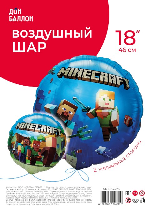 Шар фольга с рисунком 18'' 46смFL Круг, Пиксельные человечки, Дизайн №3 (упак)
