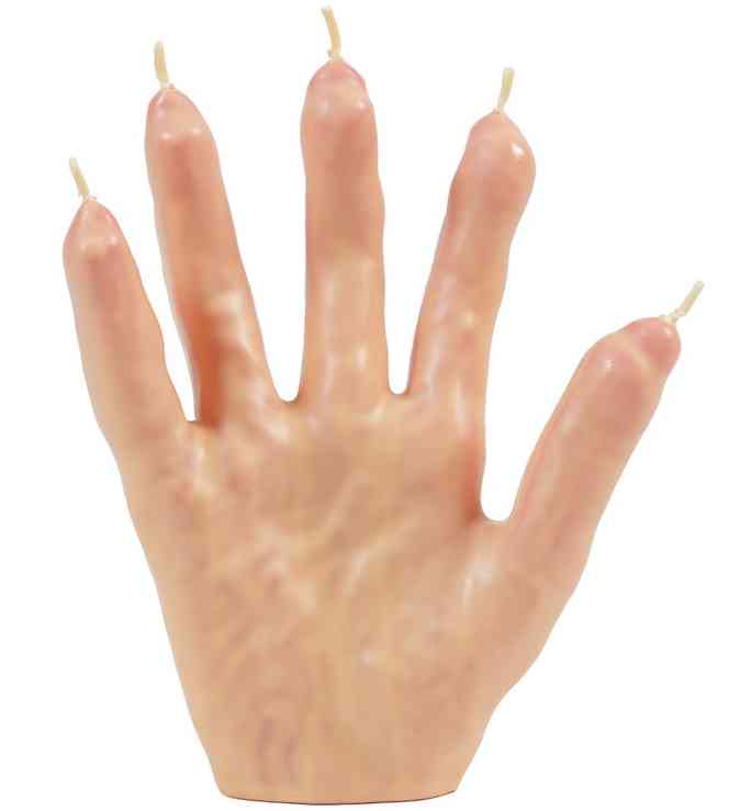 Свеча в виде человеческой руки, при зажигании которой с каждого пальца стекает красный воск, напоминающий кровь – отличный аксессуар для создания жуткой пугающей атмосферы на Хеллоуин и другой тематической вечеринке. Размер свечи 16см.