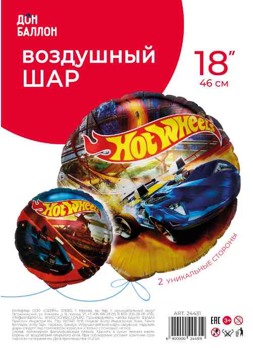 Шар фольга с рисунком 18"FL круг Горячие машинки