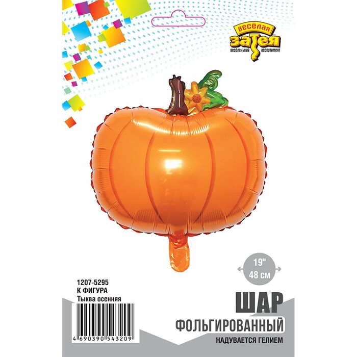 Объемный фольгированный шар высотой 56см в форме тыквы идеально подойдет для составления осенних композиций из шаров. При надувании рекомендуется использовать гелий. Имеет встроенный клапан -что упрощает надувание. Поставляется в красочной упаковке с цветным изображением шара, благодаря чему можно выставлять товар в сдутом виде. Размер шара 48(Ш)x54(В)см. Тонкая миларовая (фольга на полиэтиленовой основе) пленка позволяет шарам не сдуваться до 7 дней.