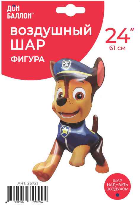 Шар фольга фигура Щенок Полицейский Чейз 24" 61смFL (упак)