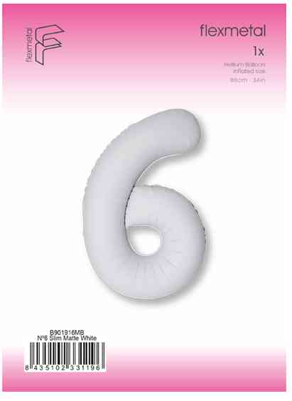 Шар фольга Цифра 40"Fm Slim Белый Матовый "6" (упак)