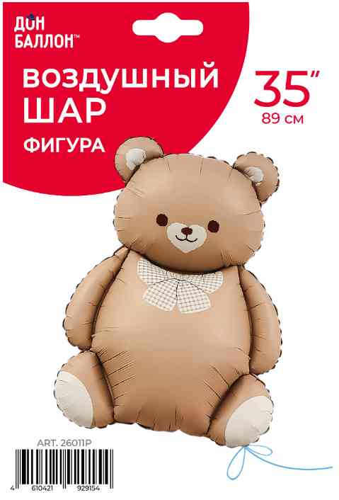 Шар фольга фигура Мишка Милый с бантом Коричневый Сатин 35" 89см FL (упак) (медведь)