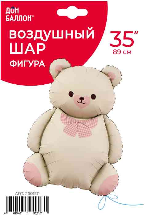 Шар фольга фигура Мишка Милый с бантом БежевыйРозовый Сатин 35" 89смFL (упак) (медведь)