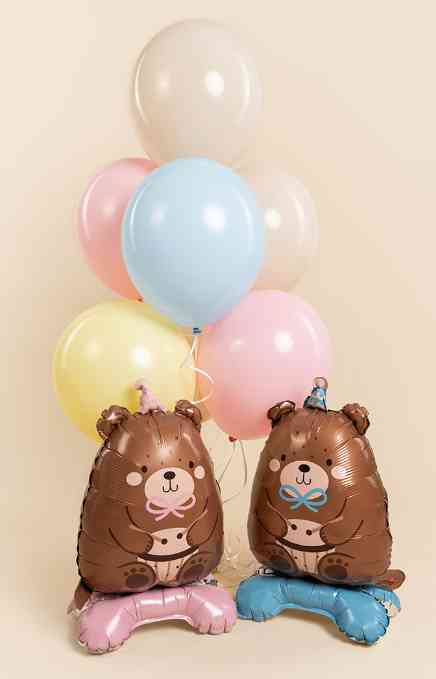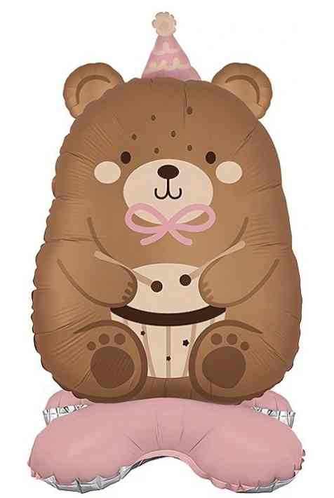 Шар фольга фигура на подставке Мишка в розовом колпачке 24" 61смFL (медведь)