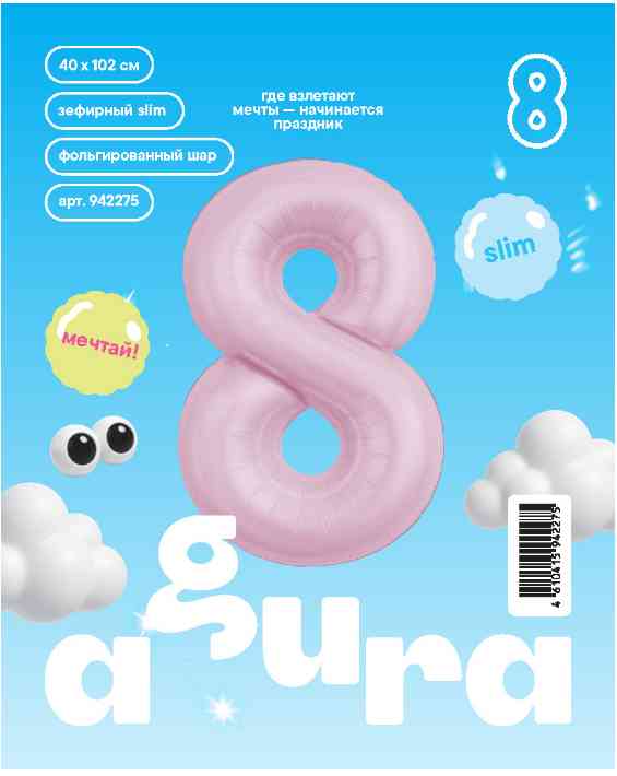 Шар фольга Цифра 40" AG Slim Зефирный "8" (упак)