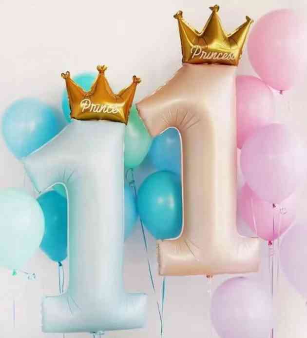 Шар фольга Цифра 40"FL Розовый "1" Золотая корона (упак)