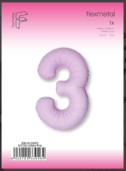 Шар фольга Цифра 40"Fm Slim Светло-розовый Матовый "3" (упак)