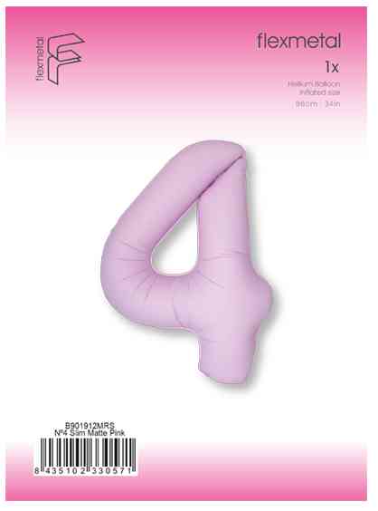 Шар фольга Цифра 40"Fm Slim Светло-розовый Матовый "4" (упак)