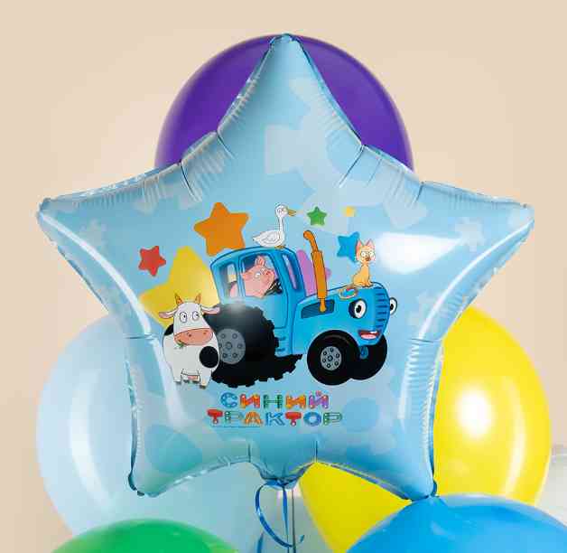 Шар фольга с рисунком 18"FL звезда Синий трактор С Днем Рождения!