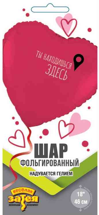 Шар фольга с рисунком 18"ВЗ сердце Ты находишься здесь Гео-точка
