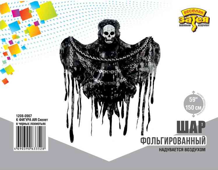 Объемная фольгированная фигура в форме ужасающего скелета в черных лохмотьях , идеально подходит для декорирования вечеринок на Хэллоуин. Шар наполняется воздухом. В комплекте поставляется трубочка, которую можно использовать для надува шарика. Выполнен из качественных материалов, что позволяет шару держать форму несколько недель. Размер шара в ненадутом виде 118(W)x150(H)см. Упакован в красочный пакет, с цветным изображением шара, благодаря чему можно выставлять товар в не надутом виде. Внимание! Реальный цвет товара может незначительно отличаться от представленного на фотографии в зависимости от настроек вашего монитора.