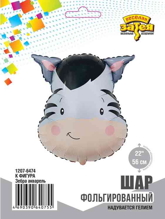 Фигурный фольгированный шар в виде очаровательной зебры — это замечательный элемент декора для любого праздника! Такой шар добавит атмосферу уюта и радости, а его милый дизайн обязательно привлечет внимание гостей, особенно детей. Шар может надуваться как воздухом, так и гелием. Имеет встроенный клапан - что упрощает надувание. Размер шара в ненадутом виде 48(W)x56(H)см. Тонкая миларовая (фольга на полиэтиленовой основе) пленка позволяет шарам не сдуваться более 5 дней. Упакован в индивидуальную упаковку с красочным изображением шара, что позволяет выставлять товар в ненадутом виде. Идеи для использования шара: 1. День рождения: Этот шар станет отличным акцентом на празднике, особенно если он посвящен детскому дню рождения. Мишка в колпаке может стать центральным элементом фотозоны. 2. Праздничный декор: Используйте шар в качестве части общего декора вместе с другими шарами и гирляндами. Он отлично сочетается с яркими цветами и другими праздничными атрибутами. 3. Подарок: Такой шар мож