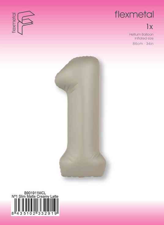 Шар фольга Цифра 40"Fm Slim Кремовый Латте Матовый "1" 901911MCL (упак)