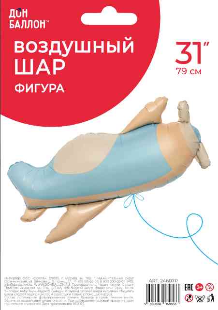 Шар фольга фигура Самолет Сатин 31" 79смFL (упак)