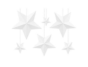 Подвесное декоративное украшение. Объёмные звёзды из белой бумаги. В комплекте 6 шт. разных размеров.