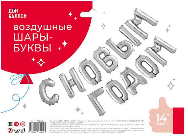 НГ Шар фольга Буквы надпись С Новым Годом Серебро 14" 36смFL