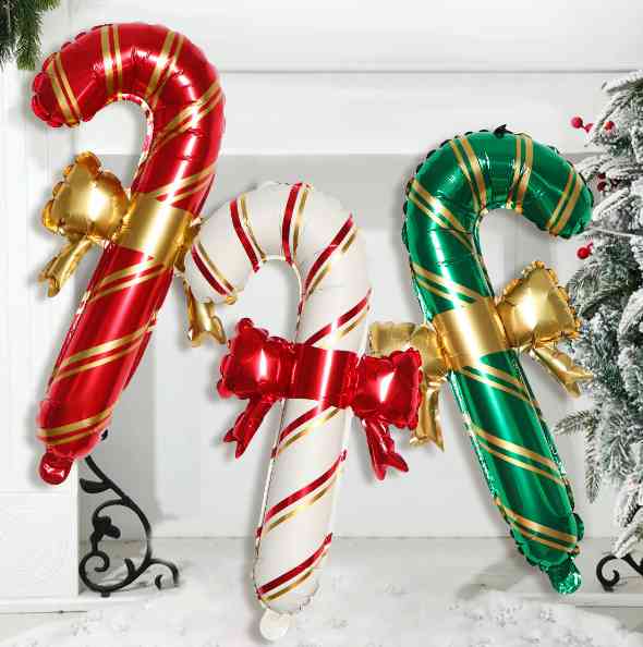 НГ Шар фольга фигура AIR Леденец трость Золотой бант (надув воздухом) Красный 30" 76смFL (упак)