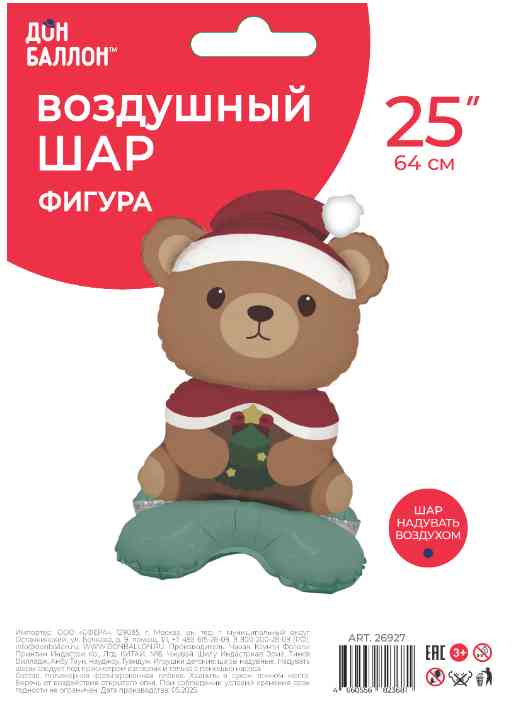 НГ Шар фольга фигура на подставке Новогодний мишка 25" 64смFL (упак)