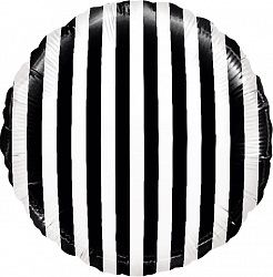 Шар фольга с рисунком 18''FL круг В полоску черный белый в упаковке