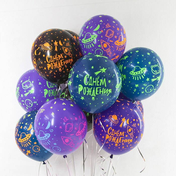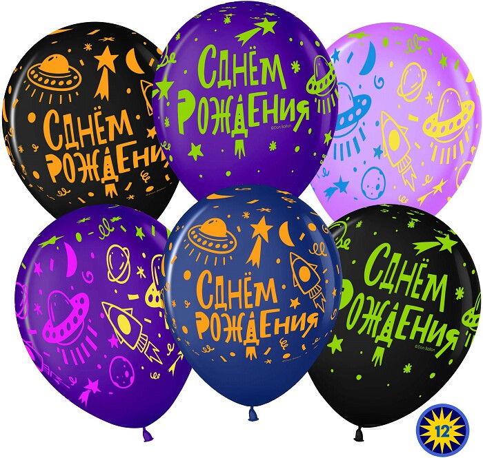 Шар латекс с рисунком 12"512 флюор СДР Яркий космос ассорти 5ст (25шт)