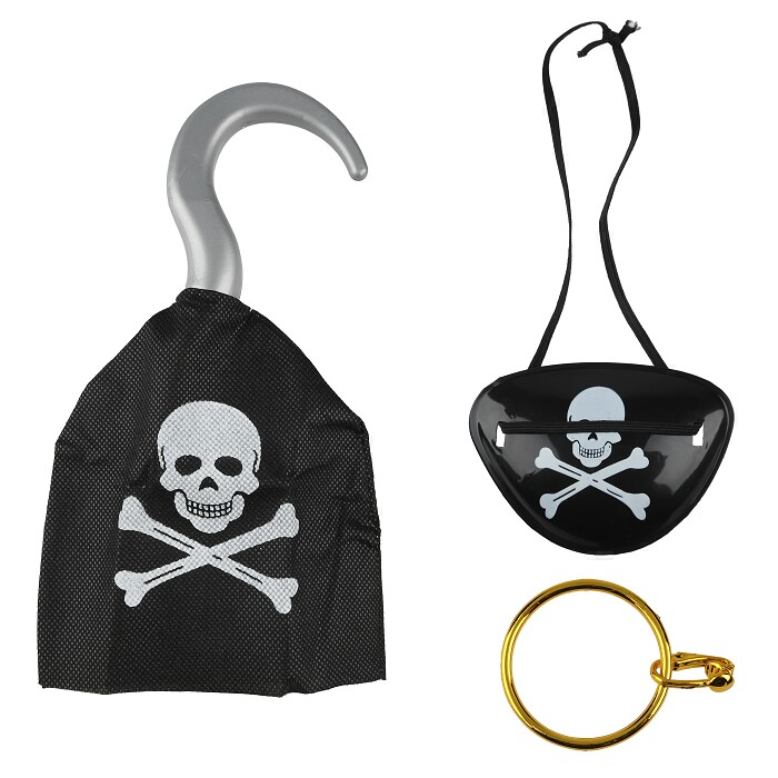 Карнавальный набор поможет создать волшебный образ на праздник и сделать его ярче. В комплекте: крюк, повязка на глаз, серьга.