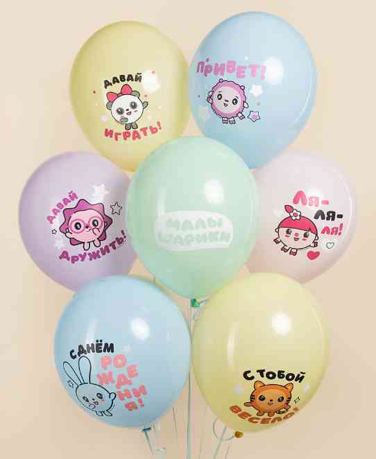 Шар латекс с рисунком 12"512 макарунс Малышарики С Днем Рождения! (25шт)