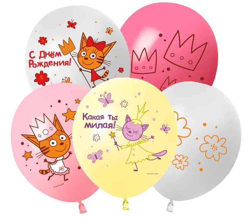 Шар латекс с рисунком 12" 512 пастель Три Кота Принцессы (25шт)