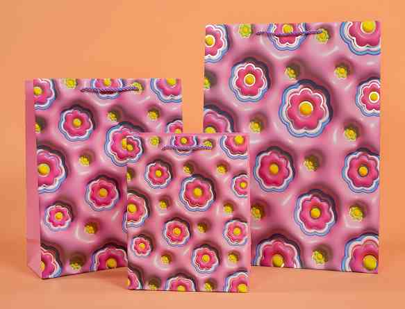 Пакет бумажный L 26х32см Цветочная россыпь Дизайн №3 Розовый