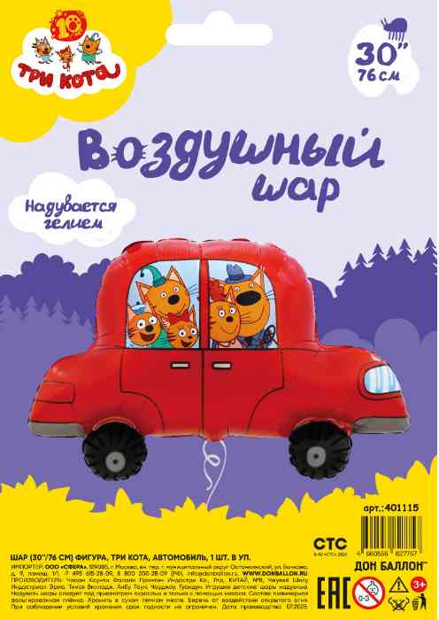 Шар фольга фигура Три Кота Автомобиль 30" 76смFL (упак)