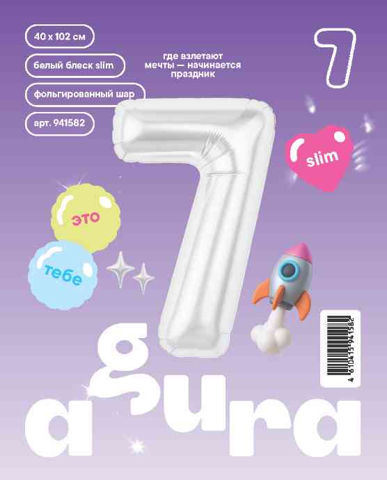Шар фольга Цифра 40" AG Slim Белый блеск "7" (упак)