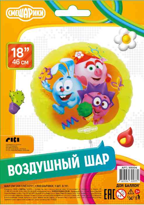 Шар фольга с рисунком 18"FL Круг Смешарики