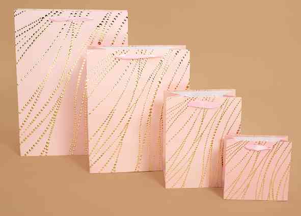 Пакет бумажный M 18х23см Золотые нити Дизайн №1 Светло-розовый Металлик