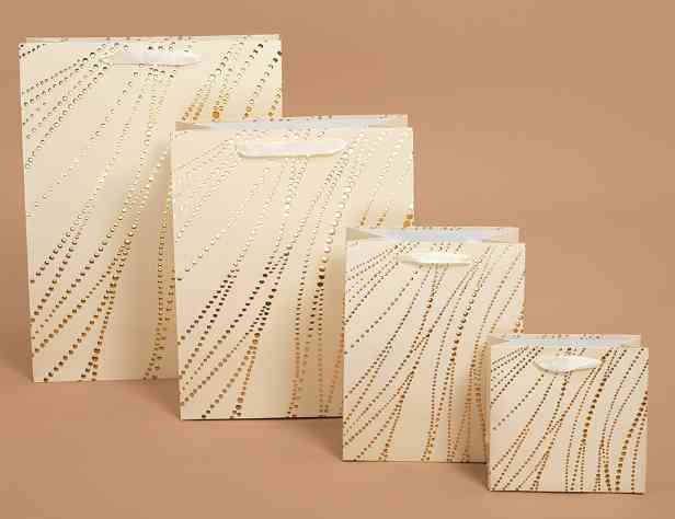 Пакет бумажный L 26х32см Золотые нити Дизайн №4 Кремовый Металлик