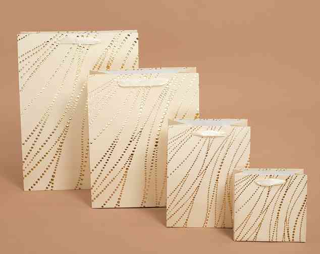 Пакет бумажный XL 31х41см Золотые нити Дизайн №4 Кремовый Металлик